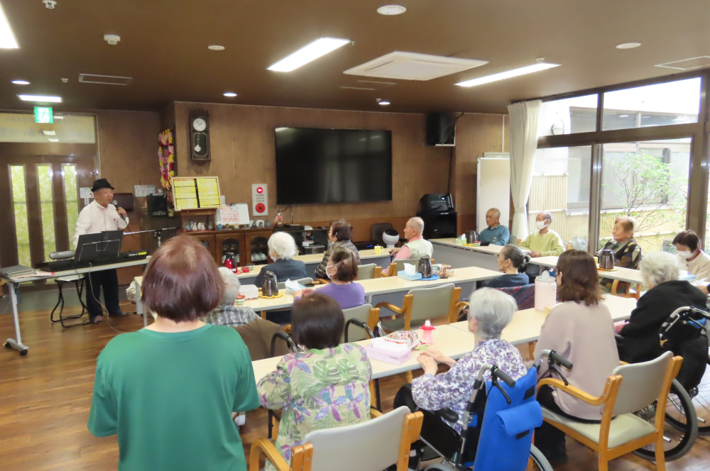 2月24日(火)ふれあいの里にボランティアの方がシンセサイザーの演奏に来ていました💗💗シンセサイザーと聞いて何だろう??と思いましたが・・電子回路を用いて音を合成しさまざまな音色を作り出す楽器の事だそうです。
